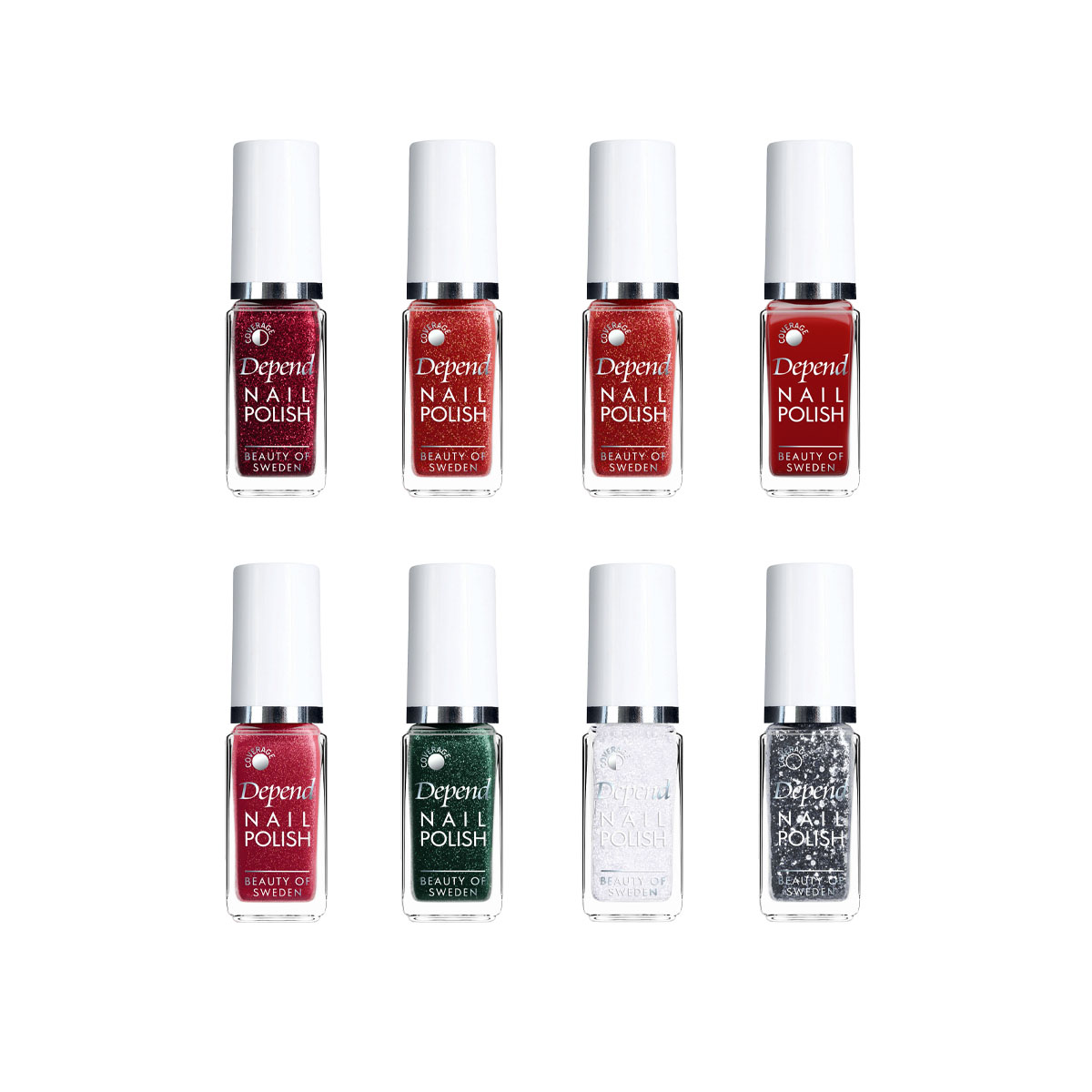 Depend Mini Poish has a perfect size of 5 ml and is easy to apply with the specially designed brush that is flat and cut with a rounded edge, making it extra flexible. The bottle is equipped with symbols that indicate the coverage level of the polish; opaque, semi-opaque, or transparent. The collections are updated regularly with the season’s trendiest colors. A true classic; small, trendy, and so affordable that you can indulge in one for every outfit in your wardrobe.