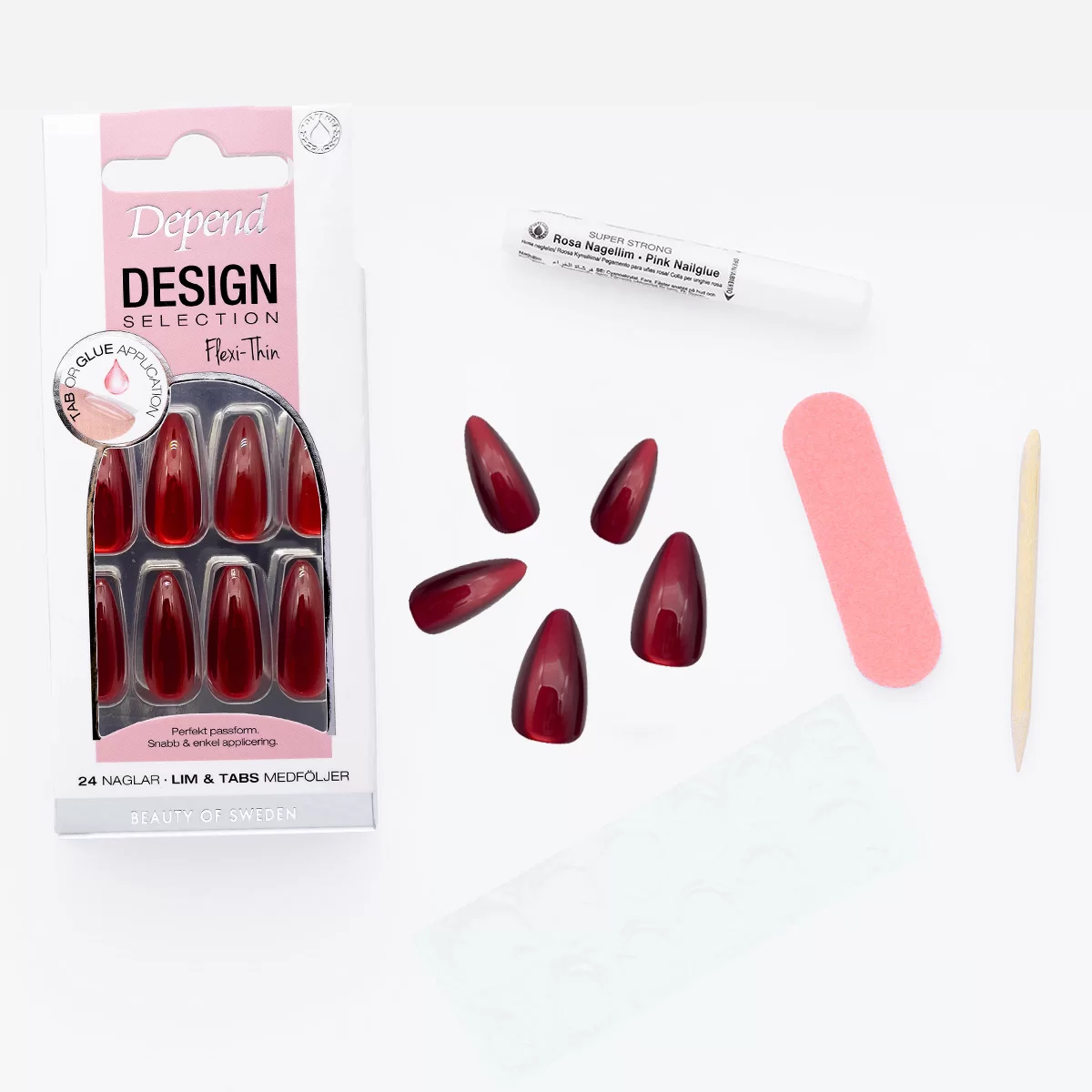 Note! We recommend a maximum of 10 days of continuous use of artificial nails. After that, the nails should be aired out before a new application can be made, provided that your nails are in good condition. When removing artificial nails, use Depend Artificial Nail Remover.