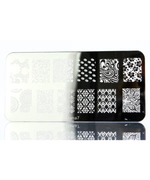 Pattern template with different motifs for use with a stamp, scraper and Depend’s special stamping nail polish.