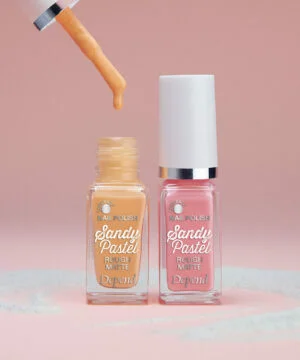 Give your nails a cool rough look with Sandy Pastel. An effect polish that creates texture and has a matte finish. For a glossy finish, apply a layer of top coat, or forgo the top coat for a bold, matte look.
